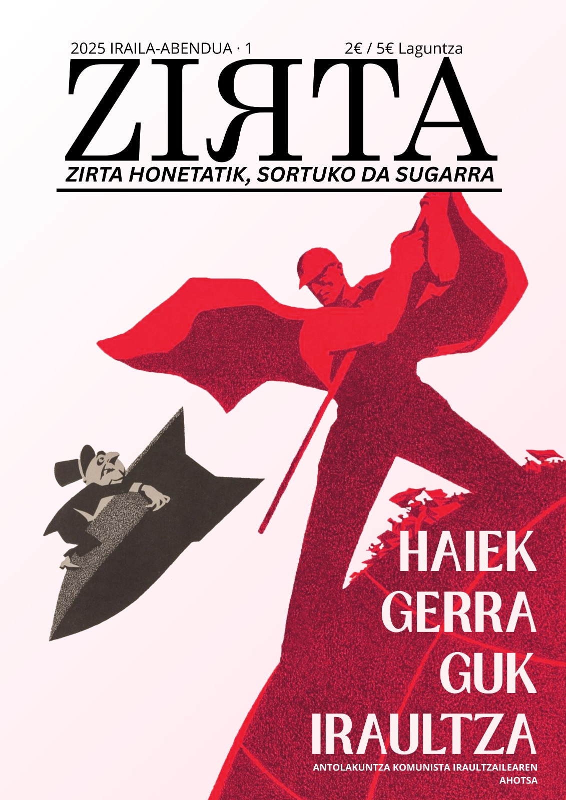 Con gran satisfacción anunciamos a los camaradas el lanzamiento de la revista de la OCR en euskera, con el nombre de Zirta (La chispa), con el subtítulo: Zirta honetatik, sortuko da sugarra (De la chispa nacerá la llama), idéntico nombre y subtítulo que tenía el periódico Iskra de Lenin.